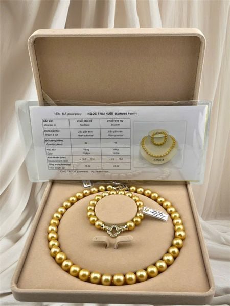 Bộ Set Ngọc Trai VVIP Vòng cổ và Vòng Tay Bộ Trang Sức Ngọc Trai Vàng Tự Nhiên 9-12mm AAAAA Cao Cấp Ngọc Trai Phú Quốc Giá Sỉ SCT048 kèm kiểm định ngọc trai chất lượng cao