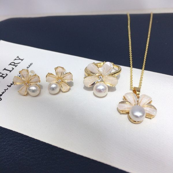 Bộ Trang Sức Ngọc Trai Phú Quốc Hoa Mai Xà Cừ 5 Cánh – Dây Chuyền, Bông Tai, Nhẫn Ngọc Trai Thật Cao Cấp Giá Sỉ Tại Phú Quốc MADAME HIEN PEARLS Cho Nữ SPS125