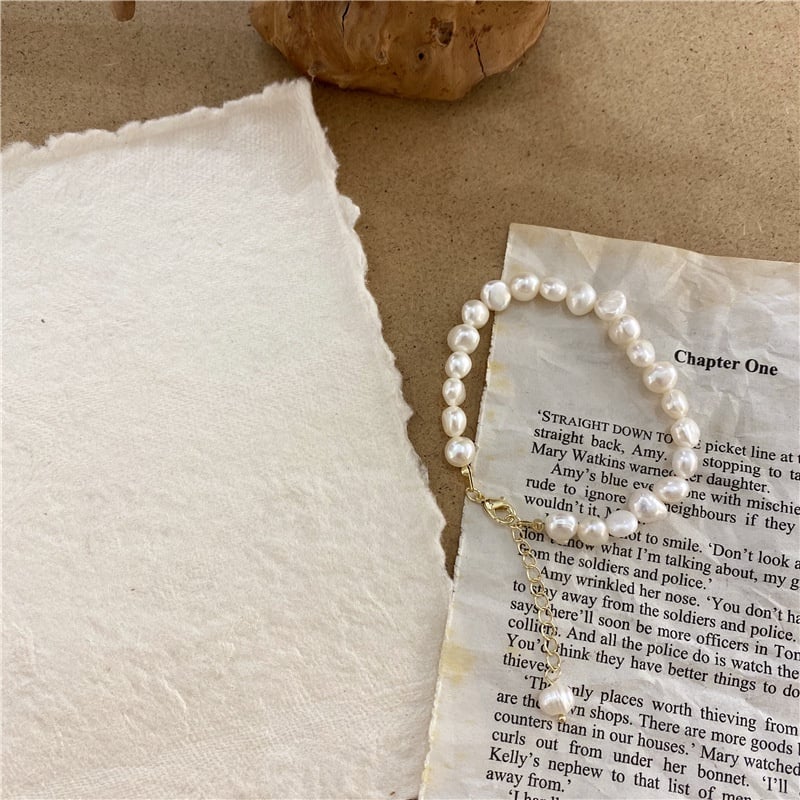 Bộ Trang Sức Vòng Tay và Vòng Cổ Đính Ngọc Trai Baroque Tự Nhiên Cổ Điển Thời Trang