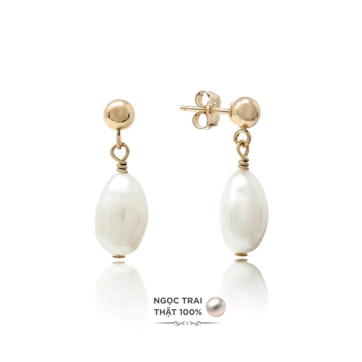 - Hạt Trai: Bông tai được chế tác từ những viên ngọc trai nước ngọt tự nhiên, được lựa chọn kỹ lưỡng và trải qua quá trình nuôi dưỡng lâu dài. Mỗi viên ngọc trai sở hữu vẻ đẹp độc đáo với lớp ánh xà cừ lấp lánh và màu sắc tinh tế, mang đến sự sang trọng và quý phái.