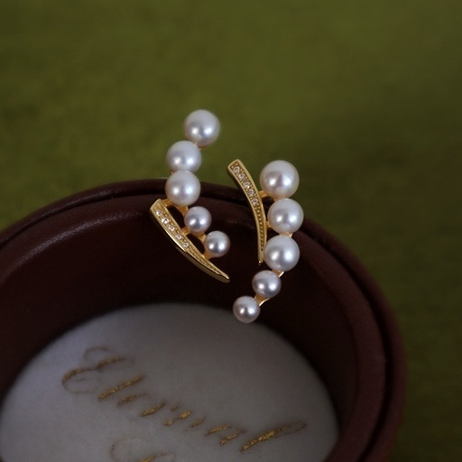 Bông Tai Bạc Đính Ngọc Trai Tự Nhiên Dãy 5 Hạt Phong Cách Pháp MADAME HIEN PEARLS Sang Trọng BTN027