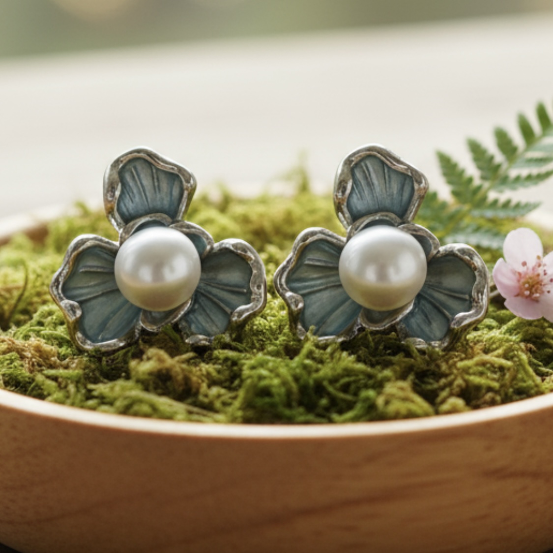 Bông Tai Bạc Nữ Hình Hoa Mai Đính Ngọc Trai Màu Xanh Pastel - Trang Sức Ngọc Trai Phú Quốc Giá Sỉ Cao Cấp, Thời Trang BTN322