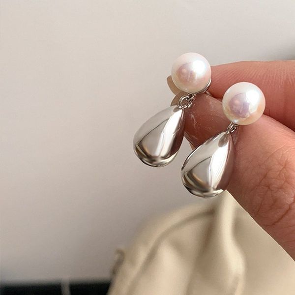 Bông Tai Kim Bạc 925 Đính Ngọc Trai Tự Nhiên Giọt Nước Phong cách Pháp sang trọng