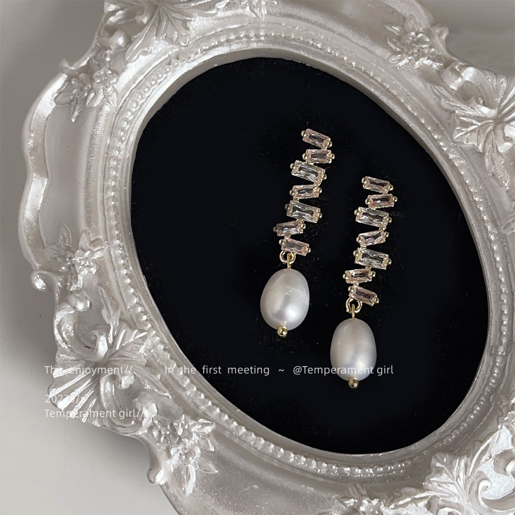 Bông Tai Mạ Bạc 925 Dáng Dài Đính Đá Tua Rua Đính Ngọc Trai Tự Nhiên - Tuyệt Tác Sang Trọng Cho Phái Nữ