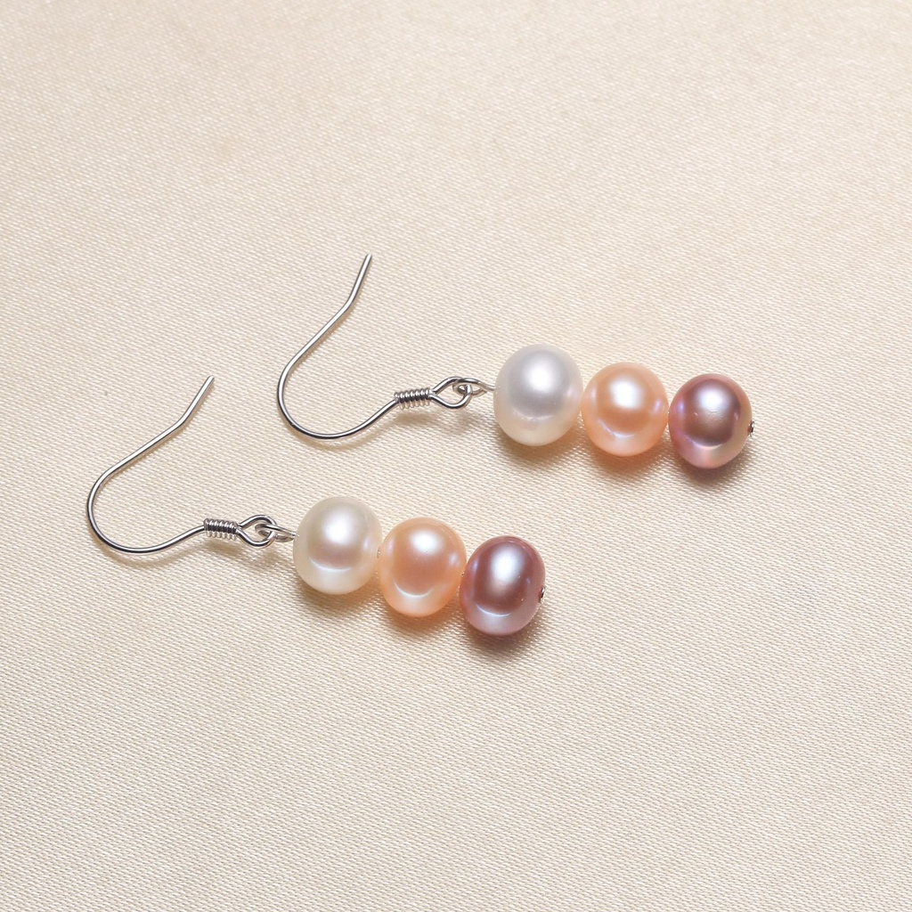 Bông Tai Bạc 925 Tua Rua 3 Hạt Ngọc Trai Tự Nhiên Dễ Thương MADAME HIEN PEARLS BTT014