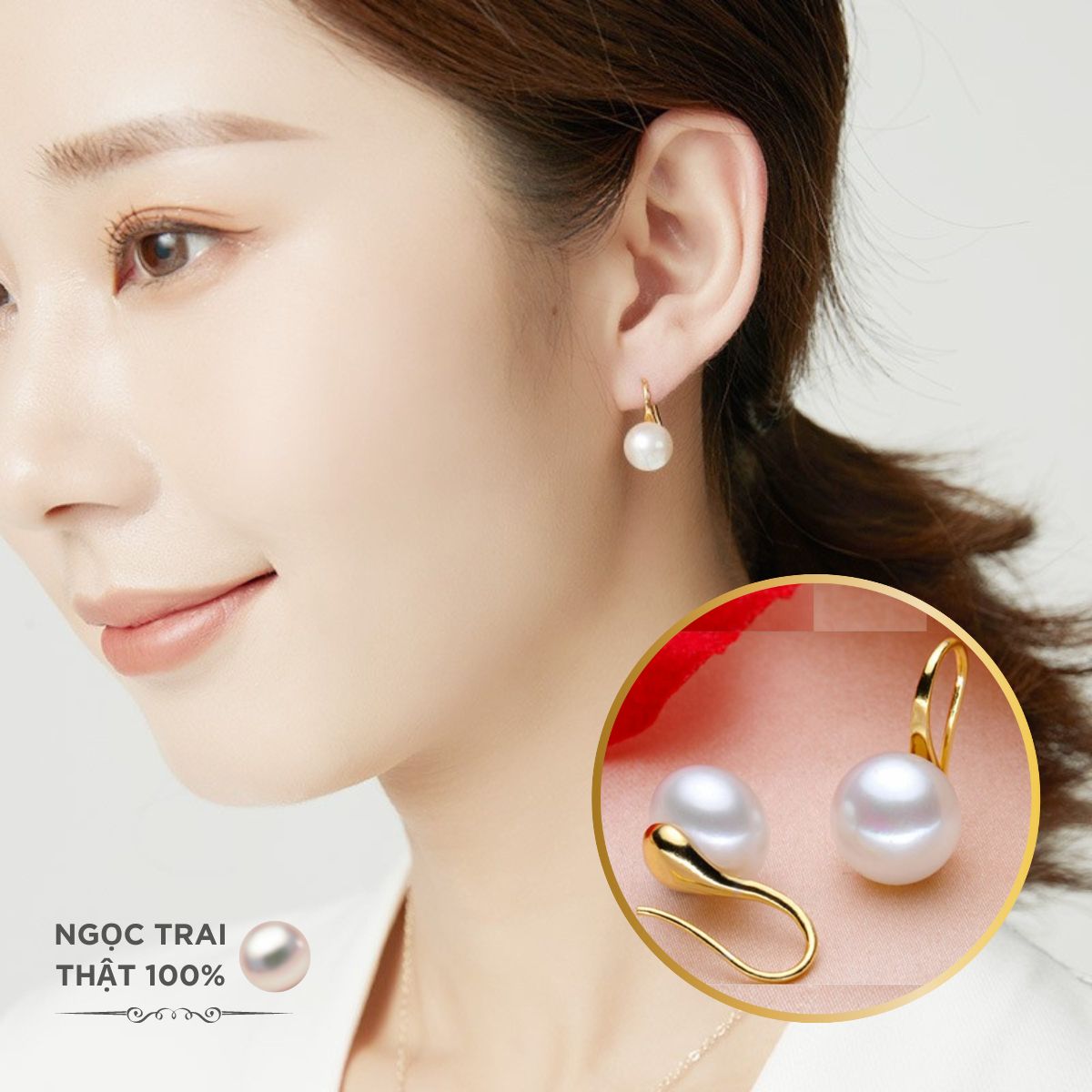 - Ngọc Trai: Bông tai sử dụng viên ngọc trai trắng tự nhiên 100%, được tuyển chọn từ các vùng nuôi trai uy tín. Ngọc trai có độ bóng hoàn hảo (AAA) và kích thước đồng đều, mang đến vẻ đẹp lấp lánh và sang trọng.