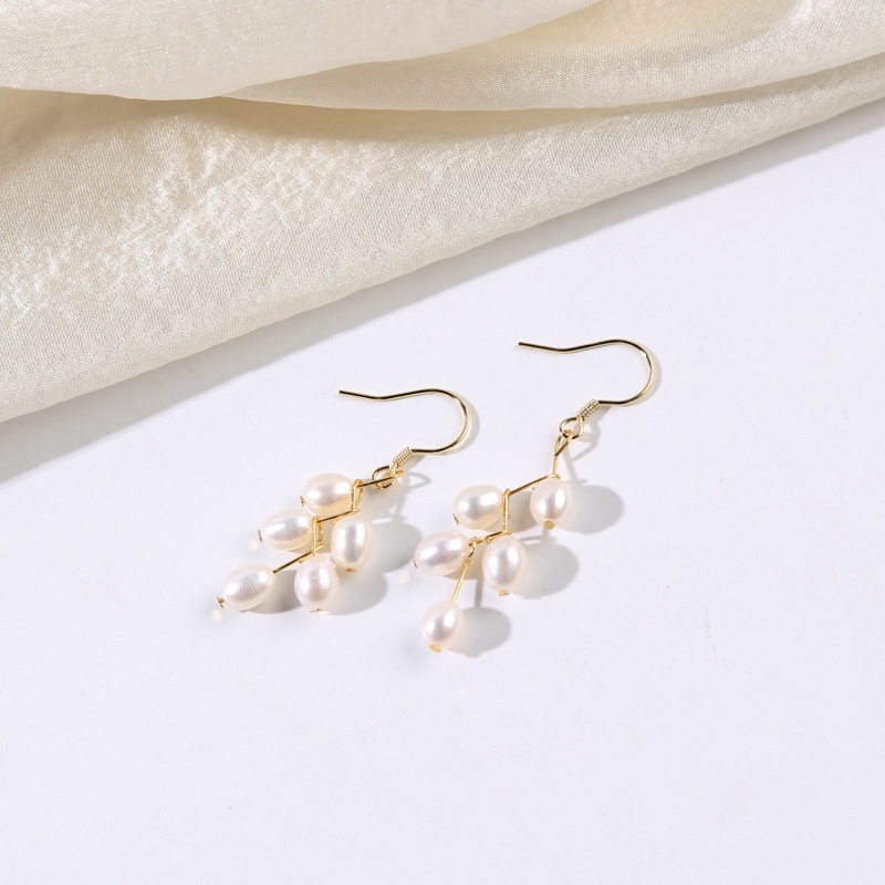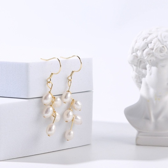 Bông Tai MADAME HIEN PEARLS Bạc 925 Mạ Đính Ngọc Trai Tua Rua Hình Hạt Gạo - Tuyệt Tác Sang Trọng Từ Ngọc Trai