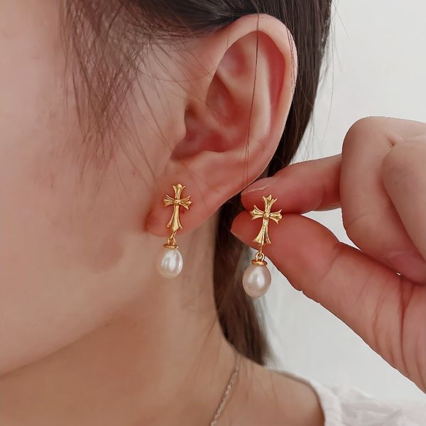 Bông Tai Ngọc Trai Giọt Nước Tự Nhiên Tua Rua Mặt Thánh Giá MADAME HIEN PEARLS Cho Nữ BTG163