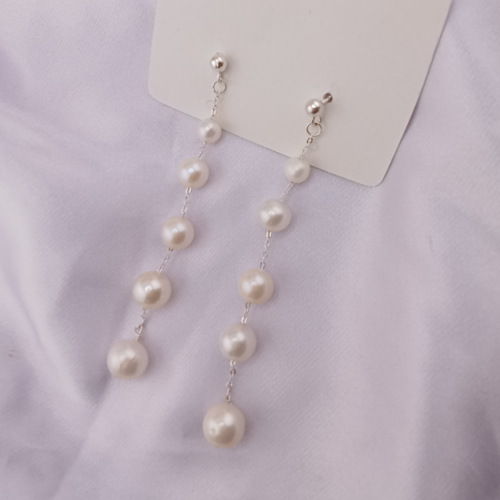 - Bông Tai Ngọc Trai Tòn Teng 5 Hạt Tròn Bạc Ta