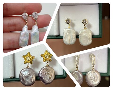 - Bông tai Ngọc Trai Tự Nhiên Handmade Tua Rua Baroque Phong cách Châu Âu, sành điệu