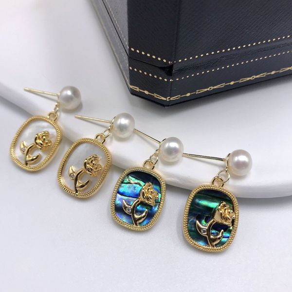 Bông Tai Ngọc Trai Tự Nhiên Khung Kim Bạc s925 Đính Bướm Vỏ Sò Khung Chữ Nhật Sang Trọng