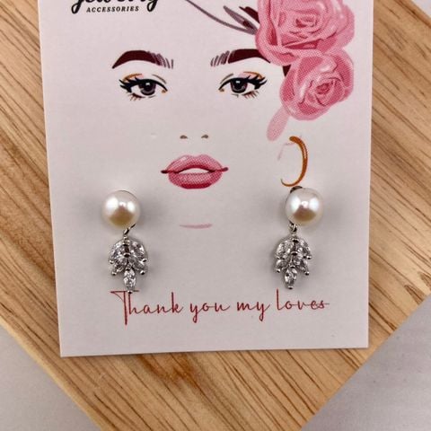 Bông Tai Ngọc Trai Tự Nhiên Lá Liễu Đính Đá Thời Trang MADAME HIEN PEARLS: Nét Thanh Lịch và Sang Trọng