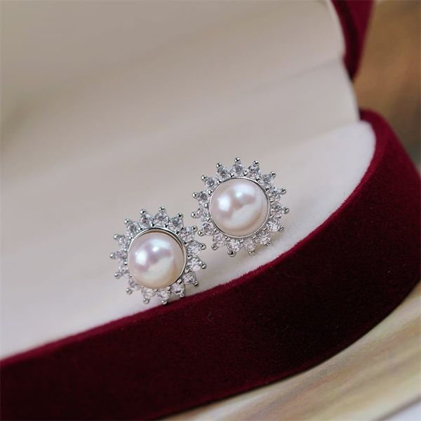 Bông Tai Ngọc Trai Tự Nhiên Mặt Hoa Hướng Dương Đính Đá Quý Sang Trọng MADAME HIEN PEARLS Cho Nữ BTN291