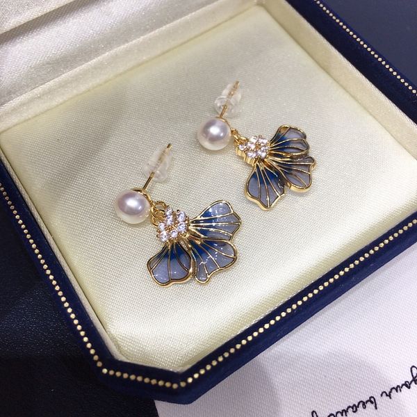 Bông Tai Ngọc Trai Tự Nhiên Mặt Tua Rua Lá Bạch Quả Ginkgo Tím MADAME HIEN PEARLS Cho Nữ BTN302