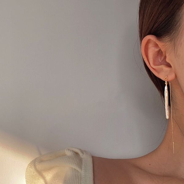 Bông Tai Ngọc Trai Tua Rua Baroque Biwa Stick Tự Nhiên Kiểu Dáng Tối Giản