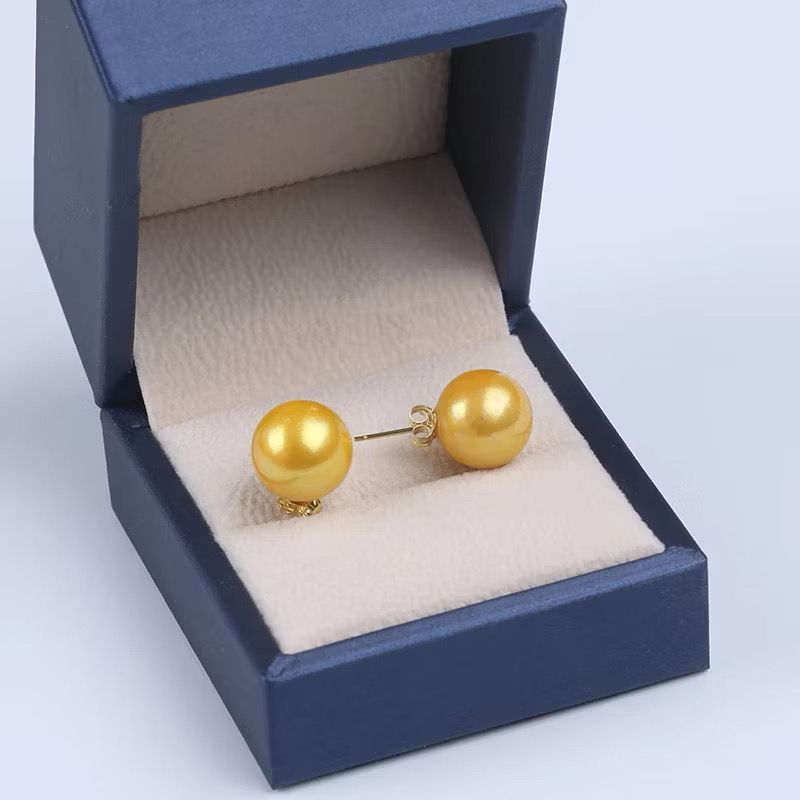 Bông Tai Nụ Ngọc Trai Vàng Tự Nhiên Hạt Edison Tròn 7-8mm AAAA Cao Cấp Chốt Bạc s925 MADAME HIEN PEARLS Tối Giản Cho Nữ