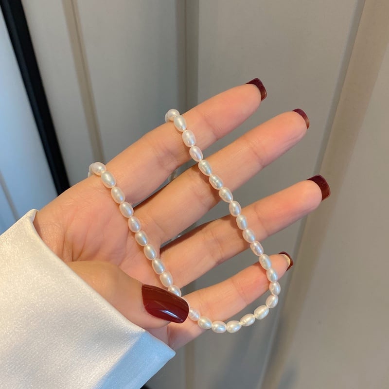 Vòng Cổ Choker Đính Ngọc Trai Nuôi Hạt Gạo Tự Nhiên Thời Trang