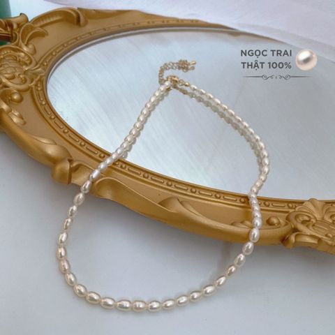 - Hạt gạo tự nhiên: Sản phẩm sử dụng hạt gạo tự nhiên, mang đến vẻ đẹp độc đáo và khác biệt. Hình dạng hạt gạo làm tăng thêm sự mềm mại và nữ tính cho vòng cổ.