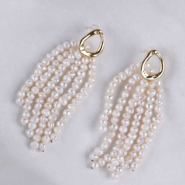 DESIGNER JEWELRY Bông Tai Tua Rua Ngọc Trai Tự Nhiên Chùm 6 Dây Khoá Mạ Vàng 14 Chốt Thời Trang RUNWAY Sang Trọng MADAME HIEN PEARLS BTT134