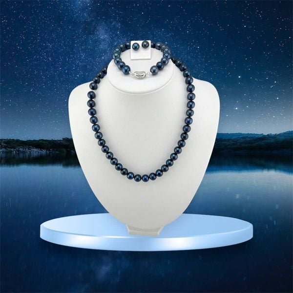 Bộ sản phẩm SCT046 bao gồm trọn bộ Vòng cổ, Vòng Tay và Bông tai Ngọc Trai size 10-11mm lý tưởng. Từng viên ngọc trai đen đều có ánh sắc huyền bí, bóng bẩy và được tuyển chọn kỹ lưỡng. Đặc biệt, sản phẩm đi kèm Giấy Chứng Nhận Chất Lượng Ngọc Trai uy tín, cam kết tuyệt đối về nguồn gốc và chất lượng.