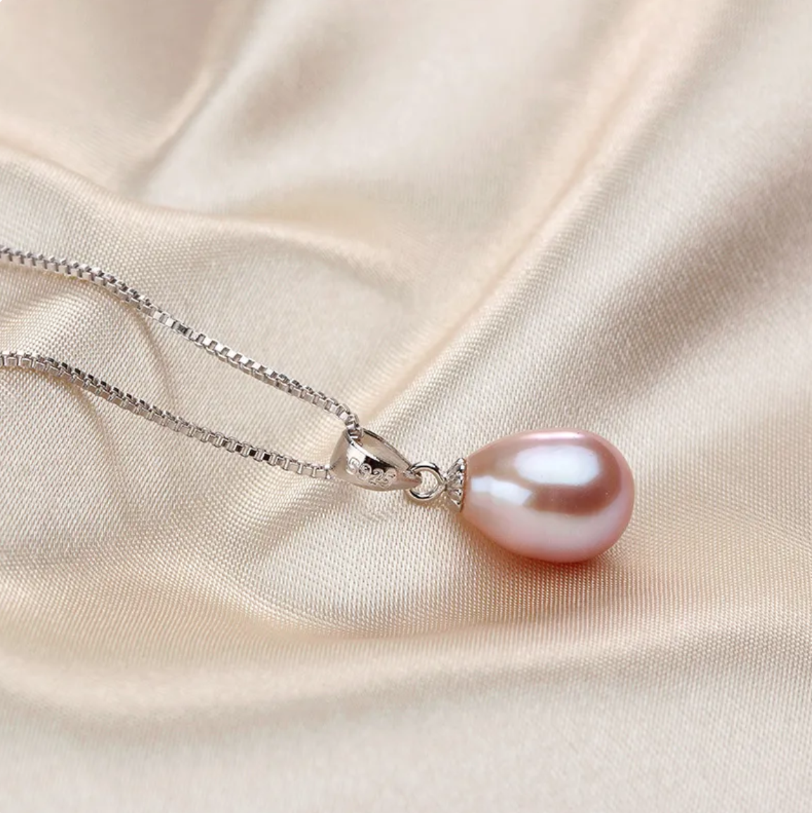 - Kiểu dáng giọt nước: Với thiết kế thanh thoát và nhẹ nhàng, viên ngọc trai được đính kết tỉ mỉ trên chuỗi dây bạc 925 mạ rhodium, tạo nên tổng thể hài hòa và sang trọng. Đây là kiểu dáng phù hợp với nhiều phong cách khác nhau.
