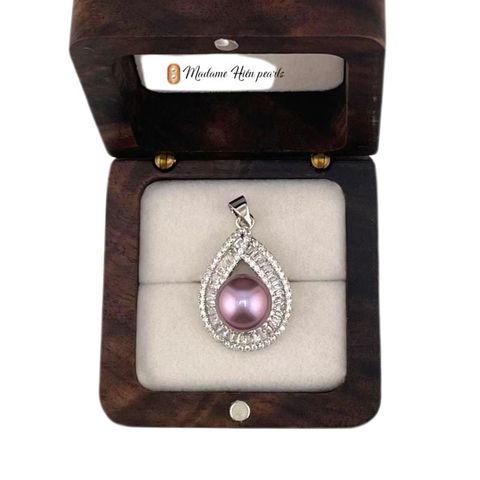 Mặt Dây Chuyền Ngọc Trai Tự Nhiên Phối Khung Giọt Nước Pha Lê Size Lớn 10-11mm