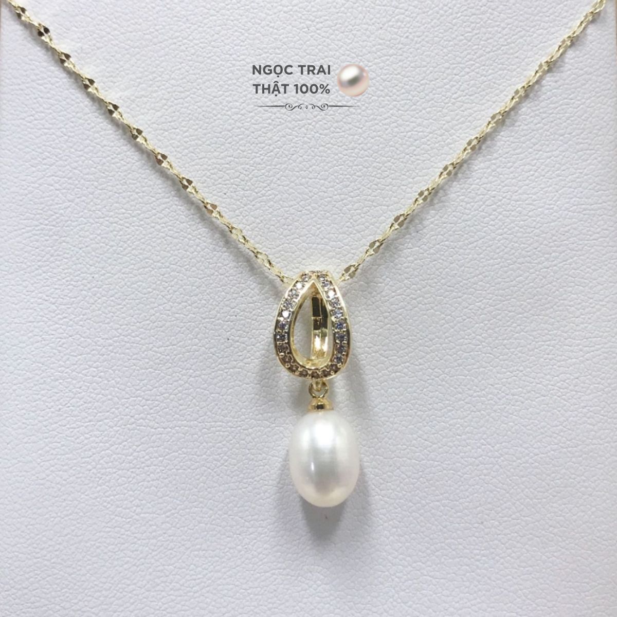 - Ngọc trai nước ngọt tự nhiên: Được chế tác từ ngọc trai nước ngọt tự nhiên, mặt dây chuyền này không chỉ mang đến vẻ đẹp lấp lánh và sang trọng mà còn đảm bảo độ bền và độ bóng lâu dài. Chất liệu ngọc trai tự nhiên này là lựa chọn lý tưởng cho những ai yêu thích sự thanh thoát và quý phái.
