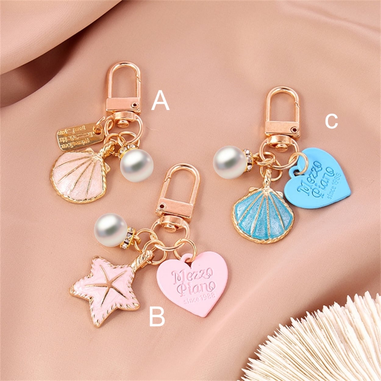 Móc Khóa Hình Vỏ Sò, Sao Biển, Trái Tim Đính Ngọc Trai Tự Nhiên - Mang Biển Cả Gắn Liền Bên Bạn