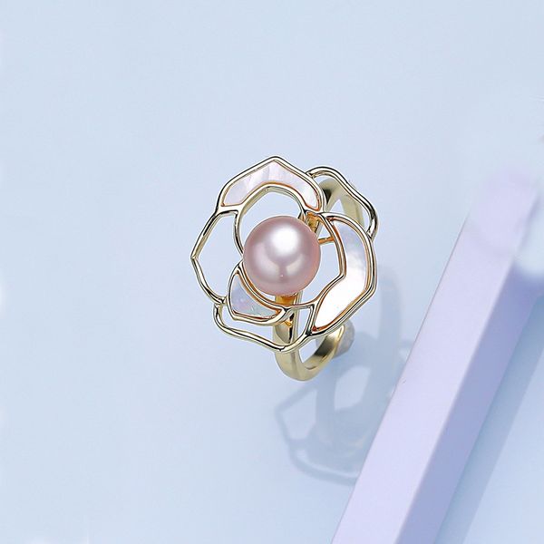 Nhẫn Ngọc Trai Tự Nhiên Dáng Hoa Trà Sang Trọng Thời Trang Nữ Tính
