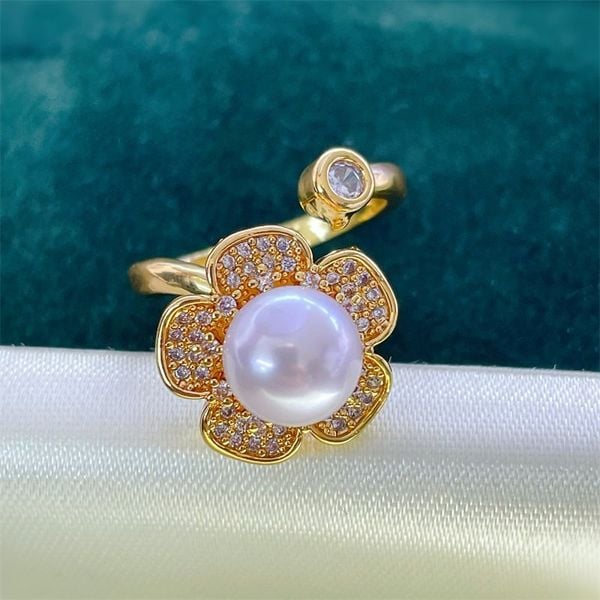 Nhẫn Ngọc Trai Tự Nhiên Mặt Hoa 5 Cánh - Ngọc Trai Phú Quốc Gía Sỉ Cho Nữ NN154