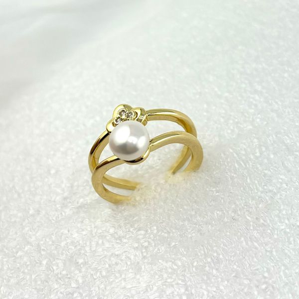 Nhẫn Ngọc Trai Tự Nhiên Vòng Đôi Mặt Ngọc Trai Tự Nhiên Điểm Hoa 4 Cánh Mini Xinh Xắn MADAME HIEN PEARLS Cho Nữ
