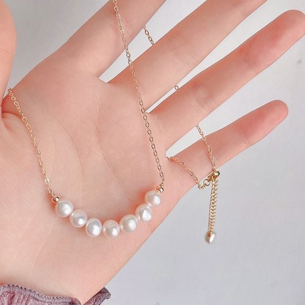• Kích thước hạt ngọc trai: Các hạt ngọc trai có kích thước từ 6-7mm x 7-8mm, tạo nên sự cân bằng hoàn hảo và sự nổi bật cho vòng cổ. Kích thước này đảm bảo rằng mỗi hạt ngọc trai đều được tôn vinh và tạo điểm nhấn cho sản phẩm.