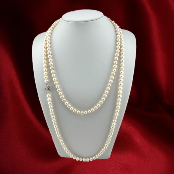 Vòng Cổ Ngọc Trai Gần Tròn Tự Nhiên Dài 130cm Khoá Hoa Hồng MADAME HIEN PEARLS