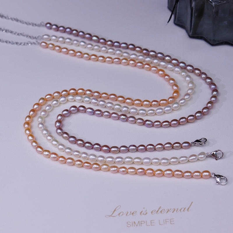 Vòng Cổ Ngọc Trai Hạt Gạo Oval Tự Nhiên 5-6mm Khoá Bạc 925 Dây Chuyền Hạt Nhỏ - Ngọc trai Giá Sỉ Phú Quốc CG002