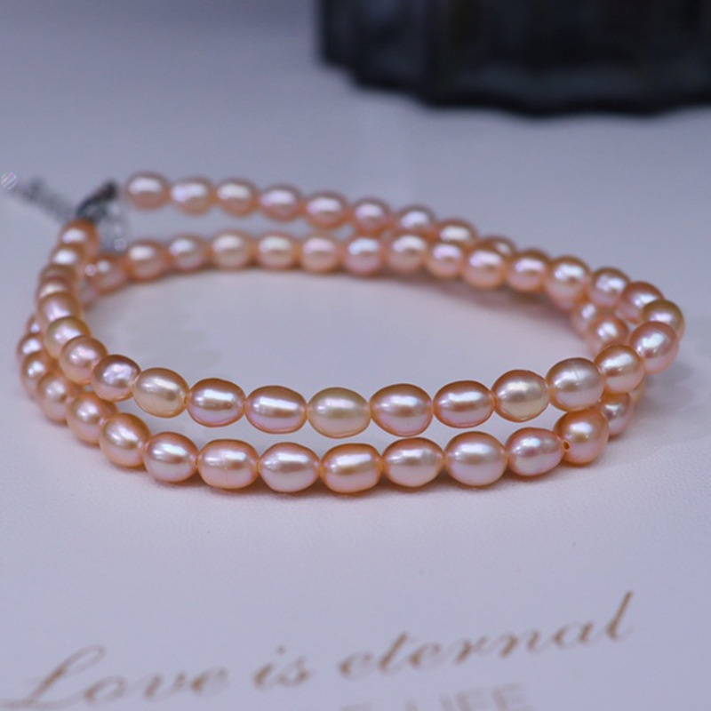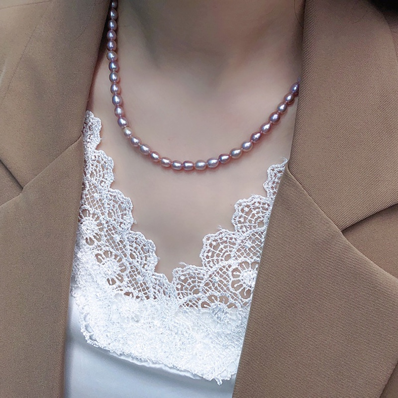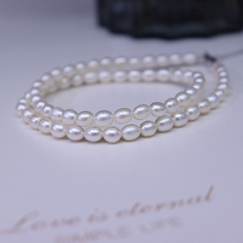 Vòng Cổ Ngọc Trai Hạt Gạo Oval Tự Nhiên 5-6mm Khoá Bạc 925
