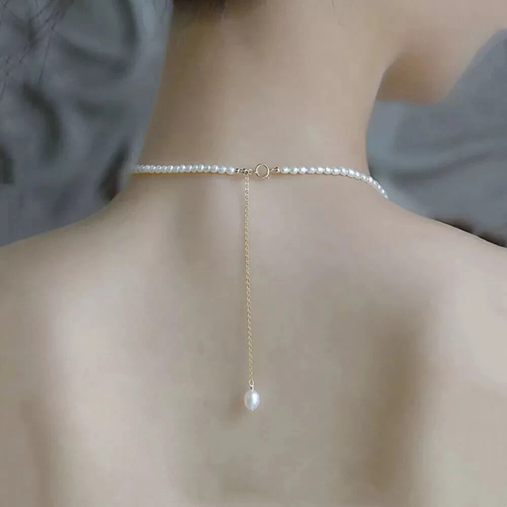 Vòng Cổ Ngọc Trai Nhí Tự Nhiên 2-3mm Khoá Bạc s925 Khoá Đính Hạt Trai Tua Rua Hạt Gạo Đáng Yêu - Ngọc trai Giá Sỉ Phú Quốc Thanh Lịch MADAME HIEN PEARLS CG084
