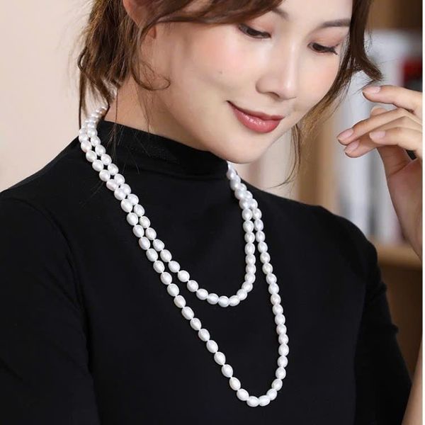 Vòng Cổ Ngọc Trai Tự Nhiên Dài 160cm Hạt Gạo Tối Giản Nhiều Kiểu Đeo MADAME HIEN PEARLS Cho Nữ CG069 Hạt Đẹp AAA