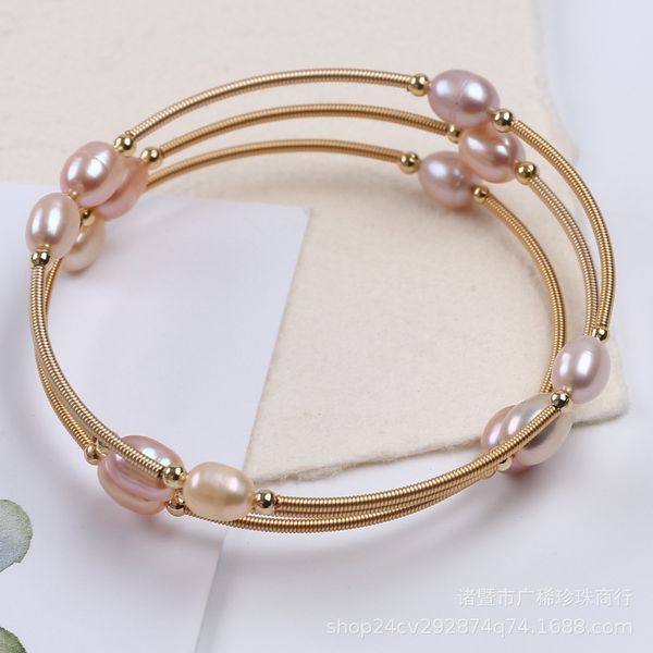 Vòng Đeo Tay Ba Vòng Tròn Đính Ngọc Trai Đa Sắc Kiểu Còng Cứng Đính Ngọc Trai MADAME HIEN PEARLS VTG010 - Đẳng Cấp và Quyến Rũ