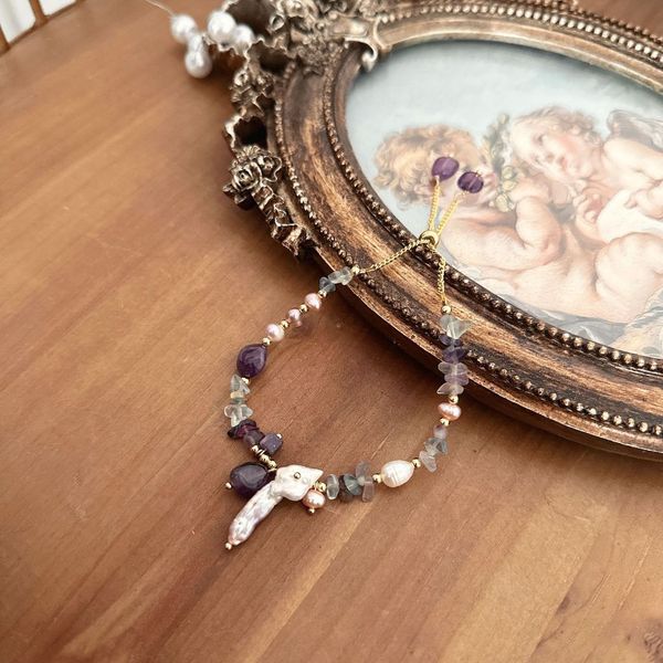 Vòng Tay Ngọc Trai Baroque Tự Nhiên Nhiều Kích Thước Phối Đá Thạch Anh Tím Thiết Kế MADAME HIEN PEARLS VTB015