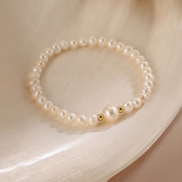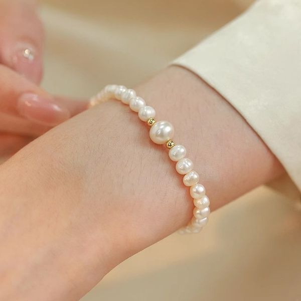 - Hạt gần tròn tự nhiên: Các hạt ngọc trai có hình dạng gần tròn, mang đến vẻ đẹp đồng đều và thanh thoát. Hình dạng này giúp vòng tay có một sự kết hợp hoàn hảo giữa sự đơn giản và sự tinh tế.